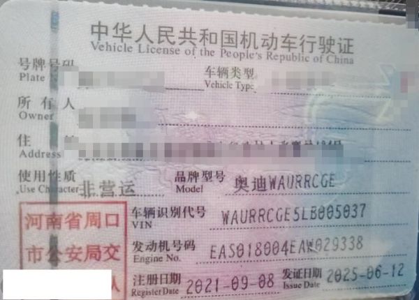 车牌号 豫****** 品牌 奥迪