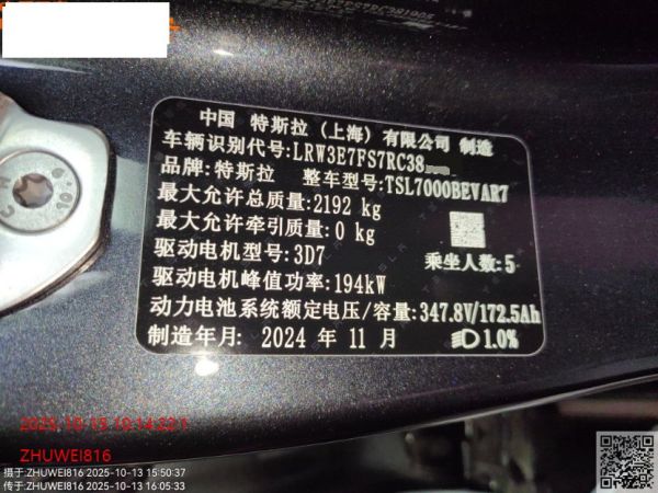 初次登记日期 2024-11-26 车辆名称 特斯拉 Model