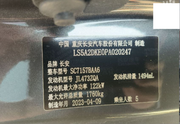 初次登记日期 2023-06-05 车辆名称 长安 逸达