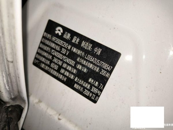 初次登记日期 2018-11-23 车辆名称 蔚来牌