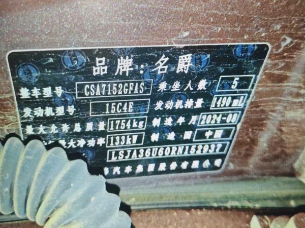 初次登记日期 2024-10-21 车辆名称 名爵牌