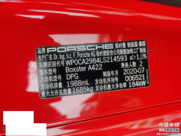 初次登记日期 2020-12-31 车辆名称 保时捷