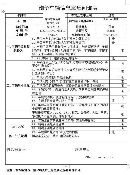车架号是否受损 使用性质 非营运