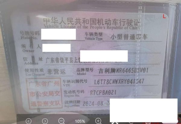 车牌号 粤****** 品牌 吉利