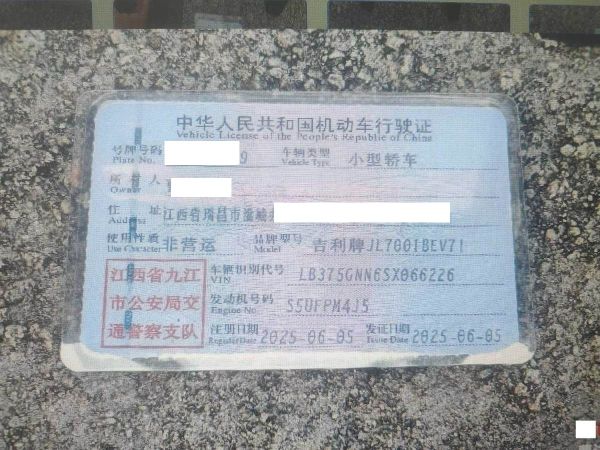 车牌号 赣****** 品牌 吉利