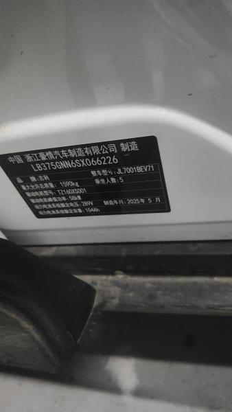 初次登记日期 2025-06-05 车辆名称 吉利银河 星愿