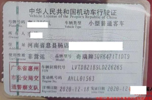 车牌号 粤****** 品牌 奇瑞