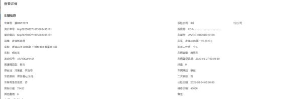 保险金额 ¥76452.57 预估维修金额 45000