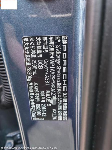 底盘号码 WP1AA29Y9KDA27584 变速箱类型 手自一体