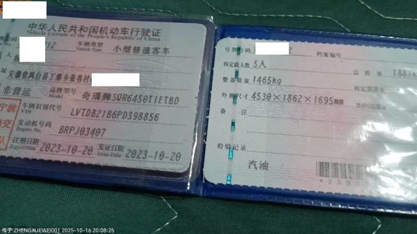 初次登记日期 2023-10-20 车辆名称 奇瑞 瑞虎7 PLUS