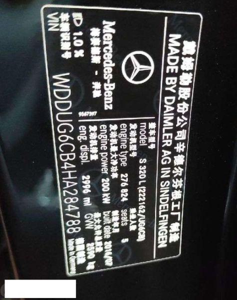 初次登记日期 2016-12-05 车辆名称 奔驰S级