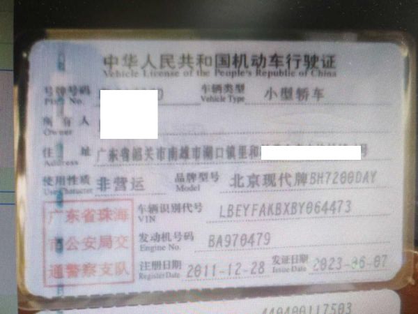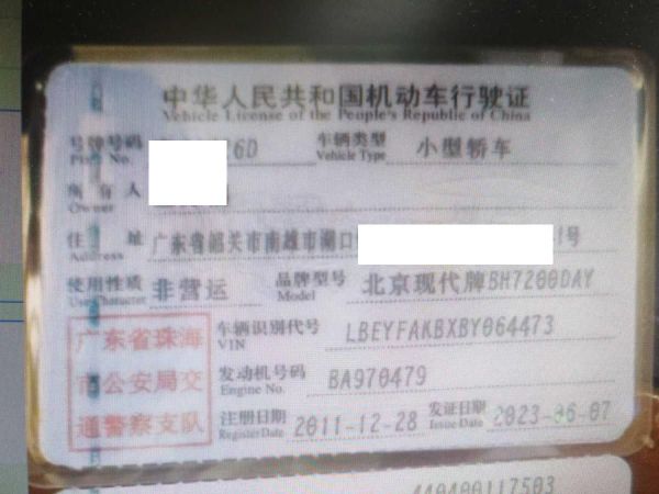 车辆归属地 广东省珠海市 车辆停放仓库 广东省韶关市韶关市