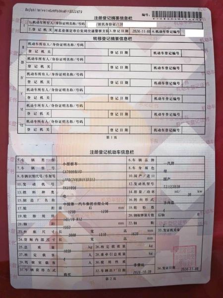初次登记日期 2024-11-08 车辆名称 奔腾小马