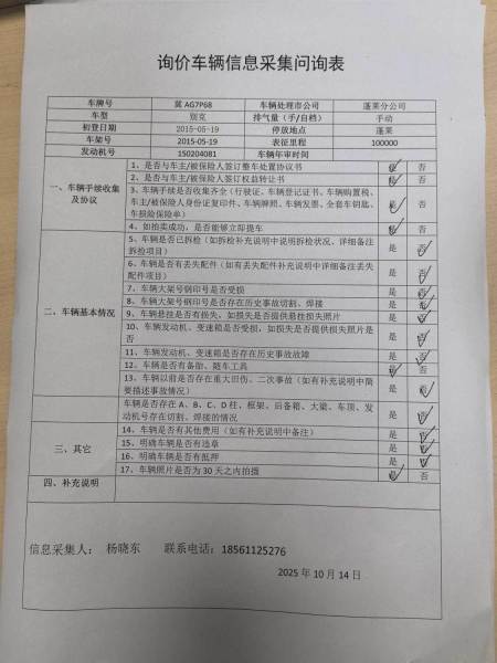 车架号是否受损 使用性质 非营运