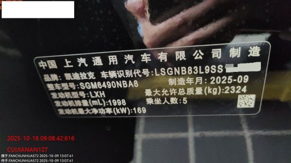底盘号码 LSGNB83L9SS117723 变速箱类型 手自一体