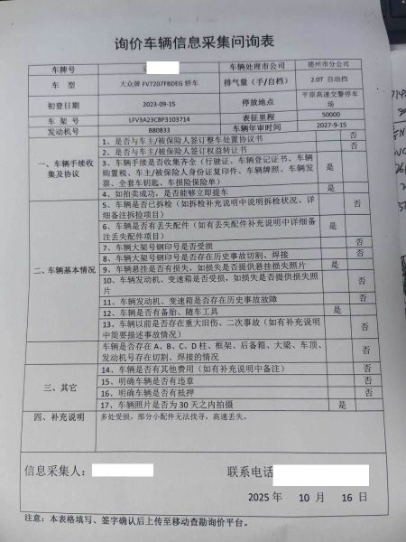 车架号是否受损 使用性质 非营运