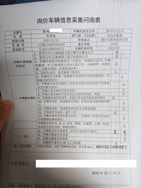 车辆归属地 山东省德州市 车辆停放仓库 山东省德州市