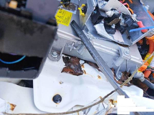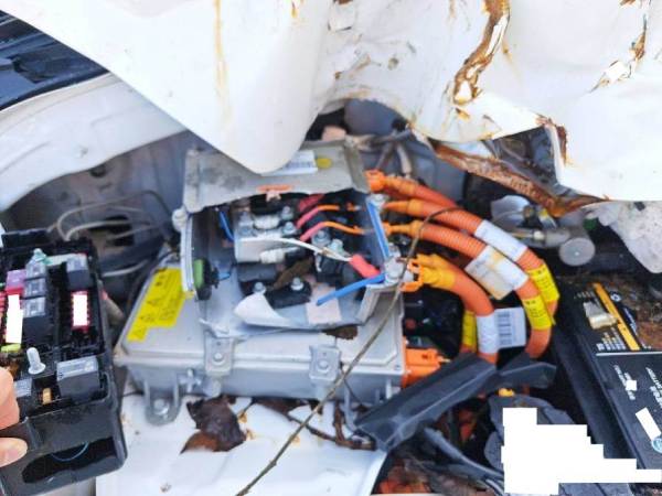车辆电控受损,左前下摆臂受损明显,二手车交易费发票金额低于拍卖成交金额开具(不含手续费及其他费用)。