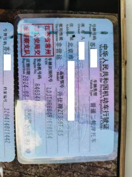 车子为升仕牌二轮摩托车