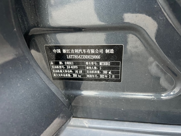初次登记日期 2022-08-24 车辆名称 吉利汽车 星瑞