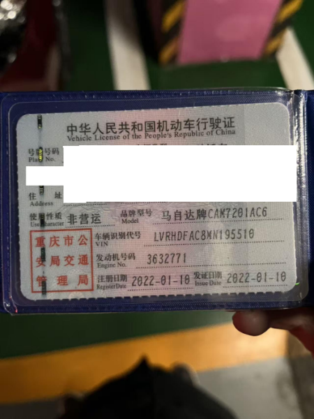车牌号 渝****** 品牌 马自达