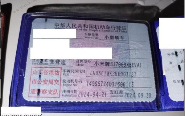 车牌号 鲁****** 品牌 小米