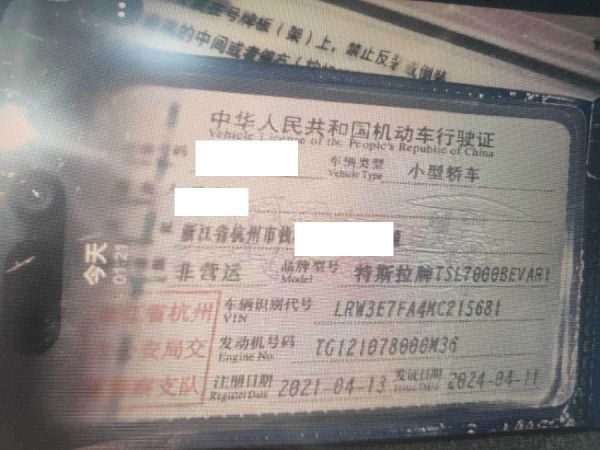 车牌号 浙****** 品牌 特斯拉