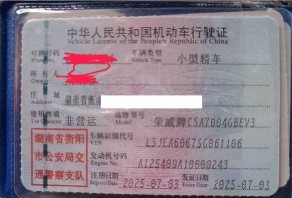 初次登记日期 2025-07-03 车辆名称 荣威牌