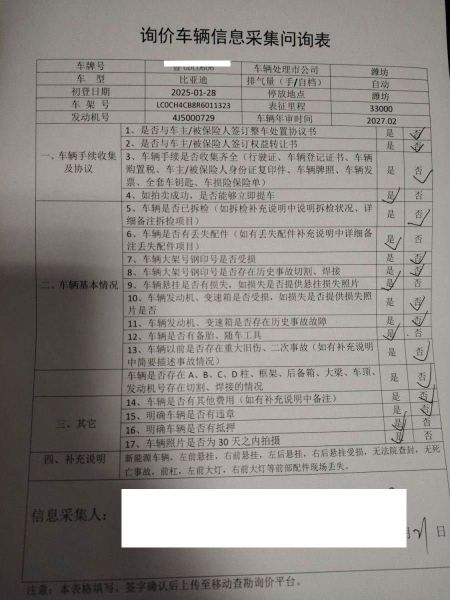 车架号是否受损 使用性质 非营运