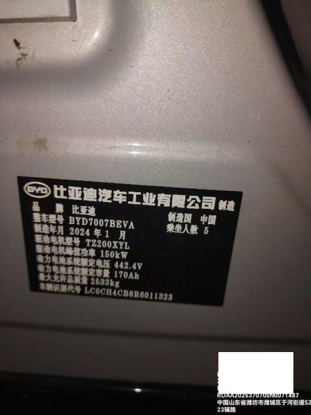 车牌号 鲁****** 品牌 比亚迪