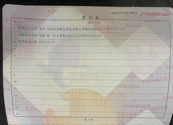 车辆归属地 山东省潍坊市 车辆停放仓库 山东省潍坊市