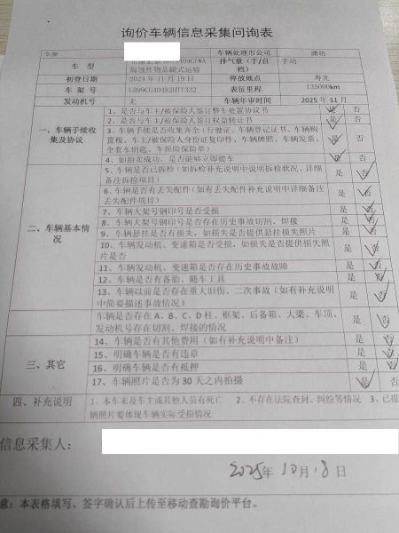 车架号是否受损 使用性质 危化品运输
