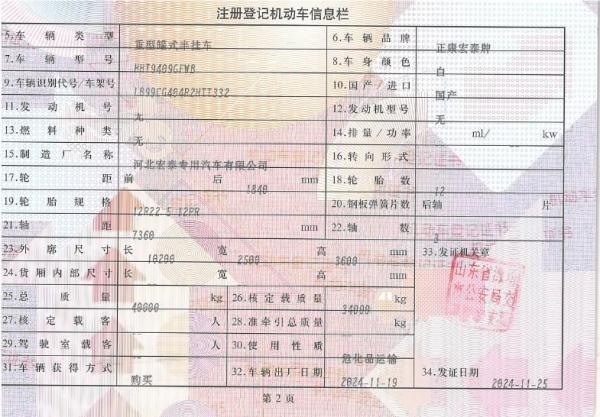 初次登记日期 2024-11-19 车辆名称 宏泰牌