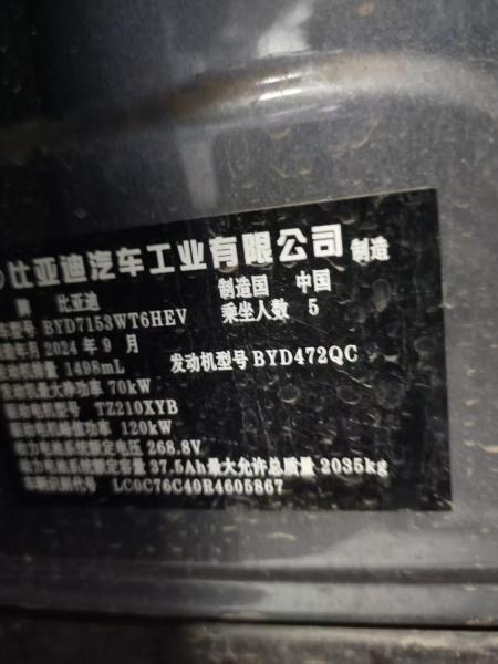 初次登记日期 2024-11-05 车辆名称 比亚迪 秦L