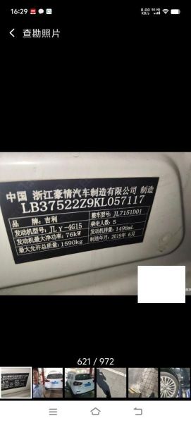 初次登记日期 2019-07-25 车辆名称 吉利汽车