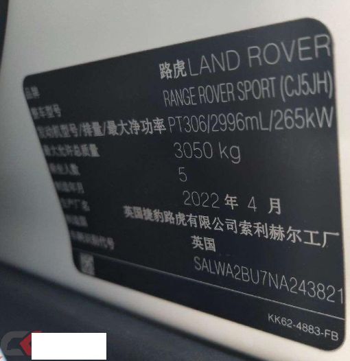 初次登记日期 2022-07-25 车辆名称 路虎 揽胜