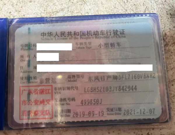 车辆归属地 广东省湛江 车辆停放仓库 广东省湛江