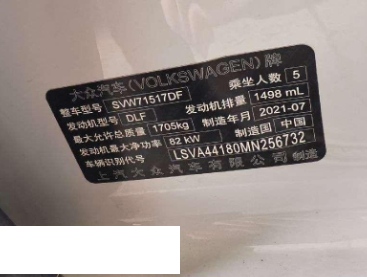 初次登记日期 2021-07-22 车辆名称 大众 朗逸