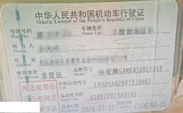 初次登记日期 2024-07-15 车辆名称 埃安牌