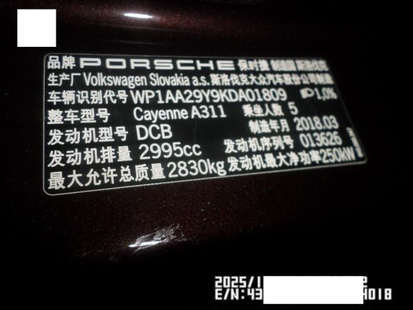 初次登记日期 2018-08-14 车辆名称 保时捷 Cayenne