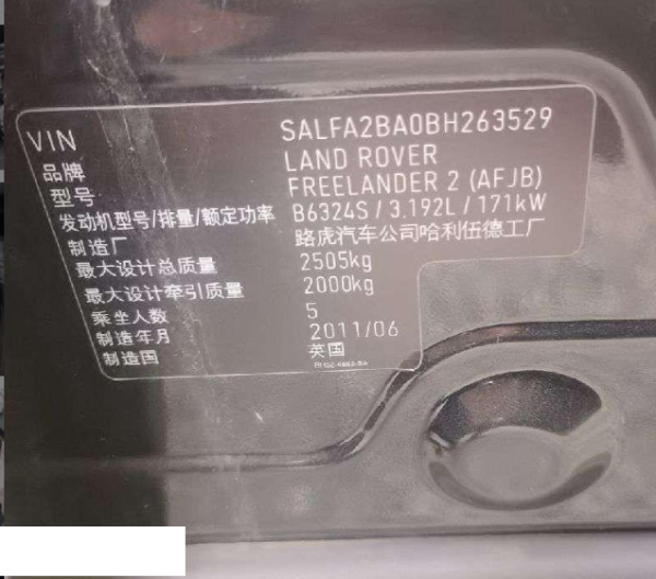 初次登记日期 2011-10-10 车辆名称 路虎 神行者2