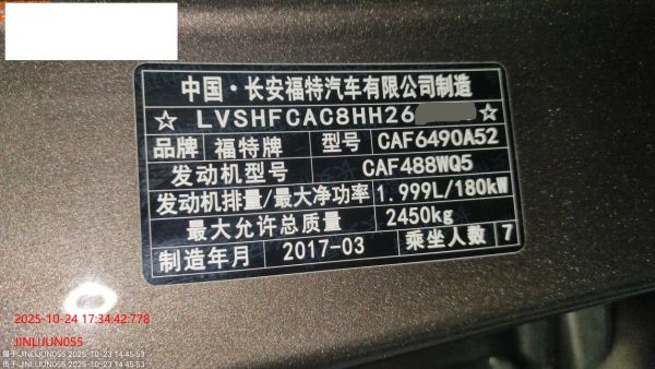 初次登记日期 2017-04-07 车辆名称 福特 锐界