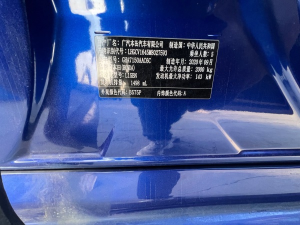 初次登记日期 2020-10-10 车辆名称 本田 雅阁