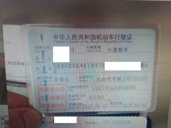 车牌号 皖****** 品牌 大众