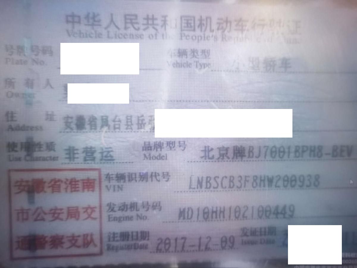 初次登记日期 2017-12-09 车辆名称 北汽新能源