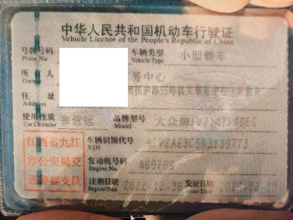 车牌号 赣****** 品牌 大众