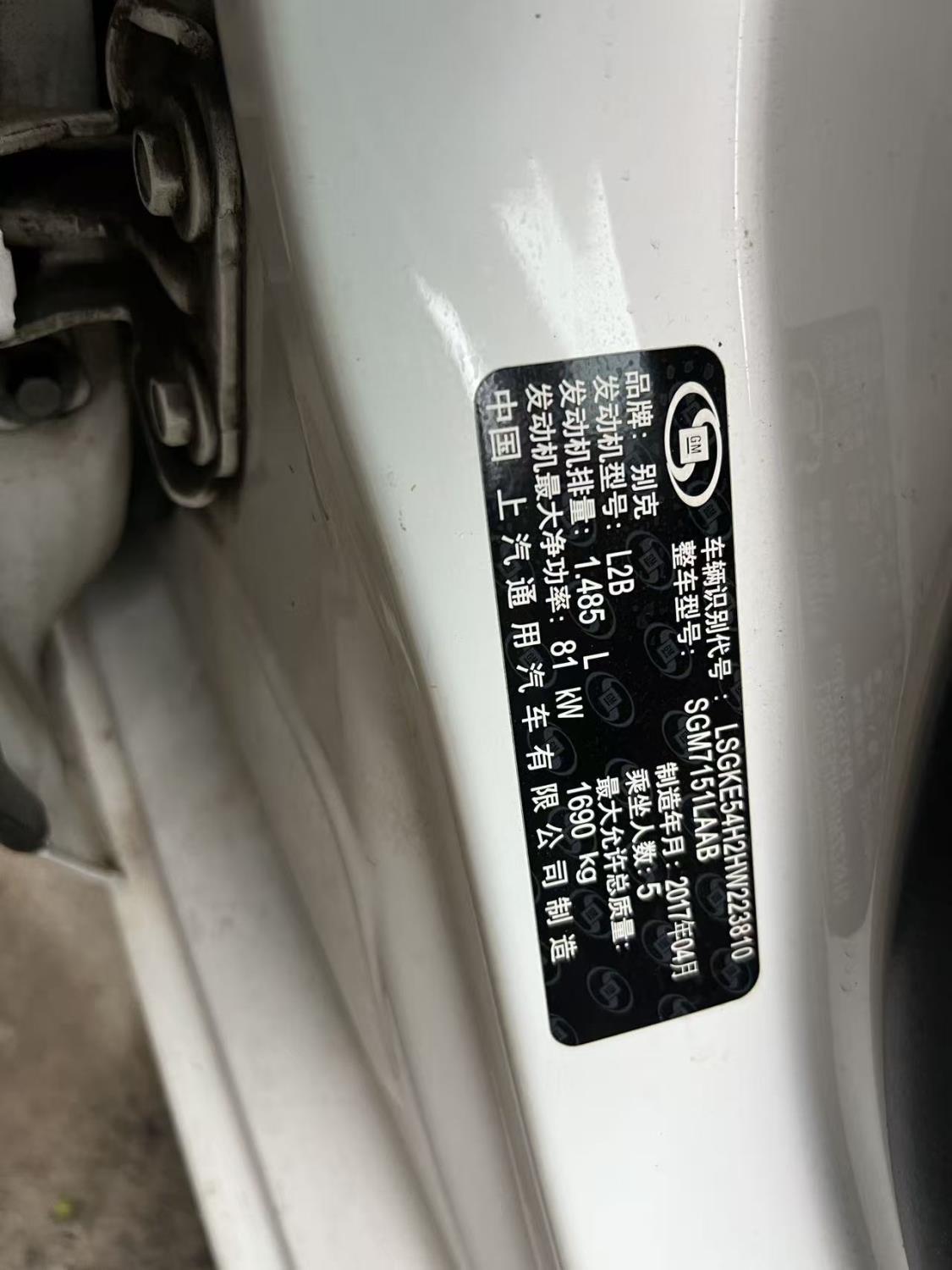 初次登记日期 2017-05-16 车辆名称 别克 英朗