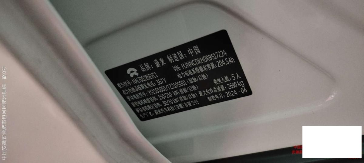 初次登记日期 2024-05-08 车辆名称 蔚来牌