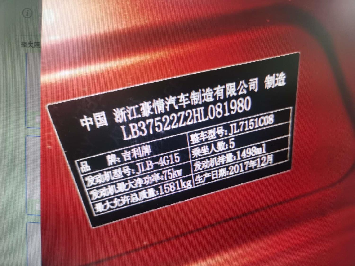 车牌号 皖****** 品牌 吉利