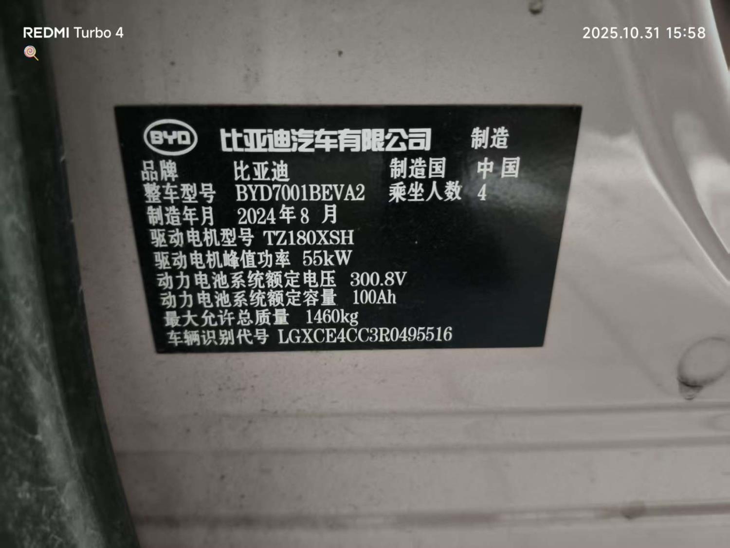车牌号 豫****** 品牌 比亚迪